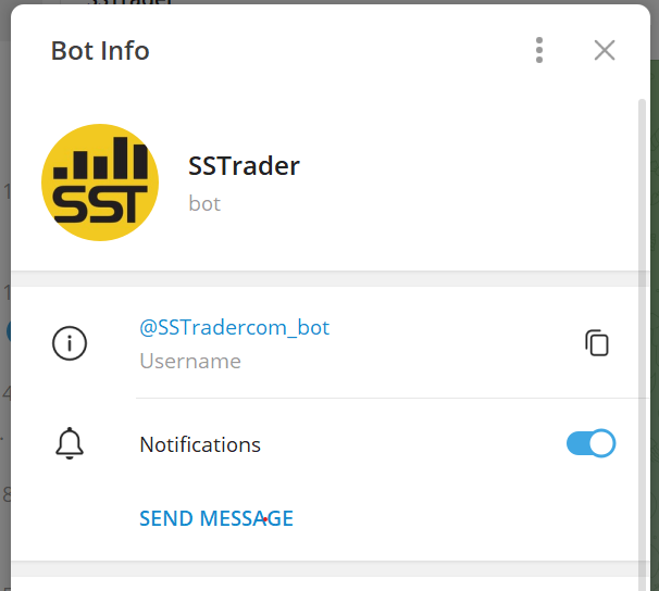 След като си потвърдил твоя телефонен номер в телеграм, трябва да напишеш на @SSTradercom\_bot  командата /start  По този начин вече трябва да получаваш нотификации директно на твоя телефон.&#x20;